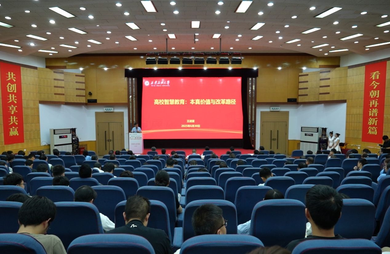 专题党课强作风,智慧赋能育新人。在专题党课环节,王进富以《锲而不舍落实中央八项规定精神 推进作风建设常态化长效化》为题,系统阐述开展学习教育的重大意义和中央八项规定精神的核心要义,深入剖析作风建设的新形势新要求,强调以高度的政治自觉和行动自觉推进作风建设,切实把纪律要求转化为日常习惯,持续营造风清气正的校园政治生态。在讲授思政课时,王进富以《高校智慧教育:本真价值与改革路径》为题,从“怎么想、怎么看、怎么干”三个层面展开深入阐释,为师生带来了一场深刻的思想启迪。他强调,智慧是教育的永恒追求,智慧教育为实现这一追求创造条件,是回归教育本真的关键。当前高等教育面临深度转型,地学发展尤为重要,智慧教育成为全球共识且已具备实施基础,教育主体亟需主动变革。要坚定数智赋能,通过重塑智慧办学新理念、构建智慧办学新体系、构建智慧办学新校园、升级智慧教育新环境、构建智慧教育新范式、促进智慧管理新体系,建设以学生为中心、以教师为根基、有感情有温度的智慧西石大,不负智能时代与育人使命。