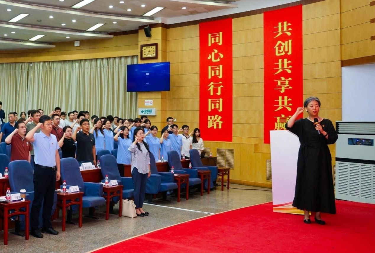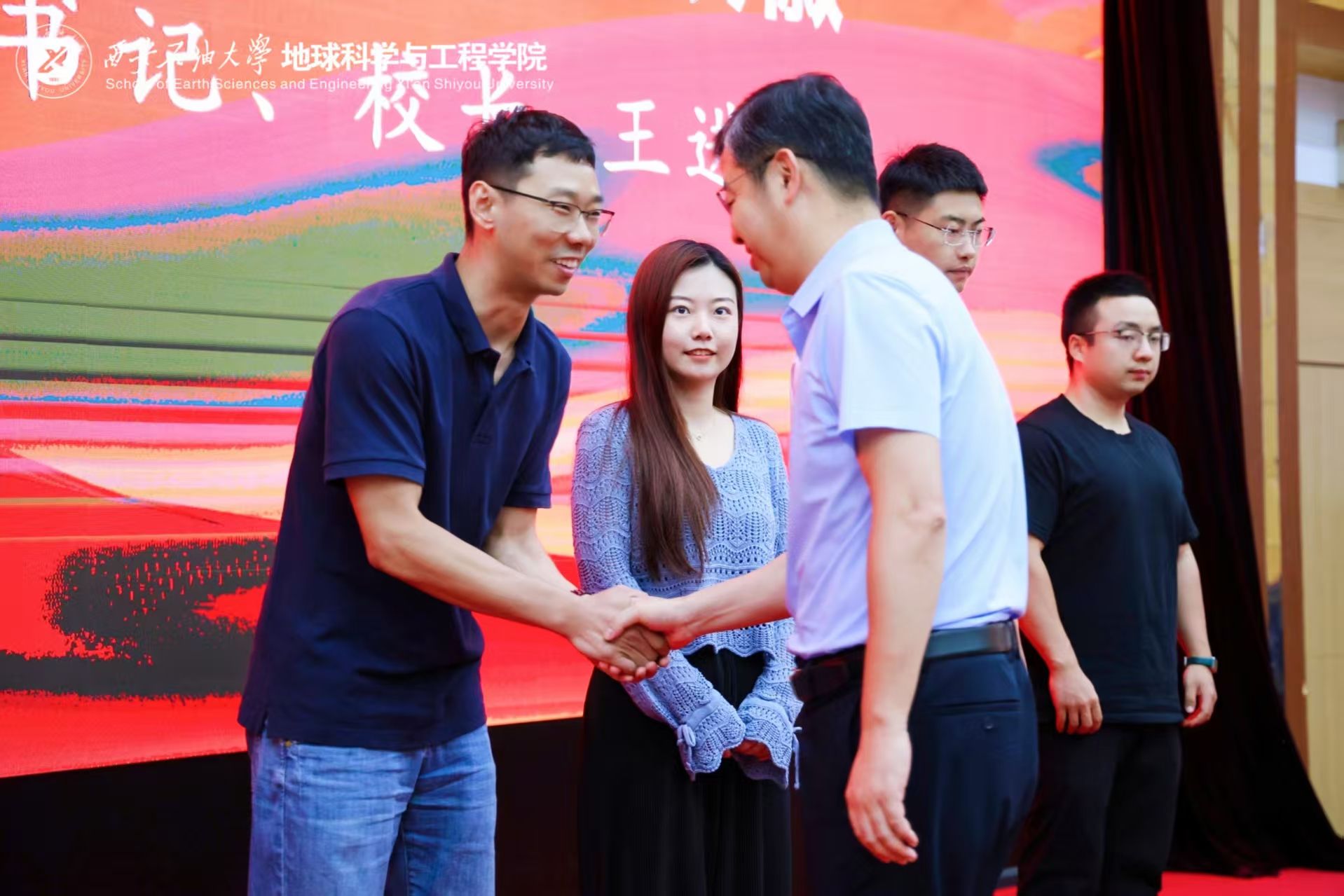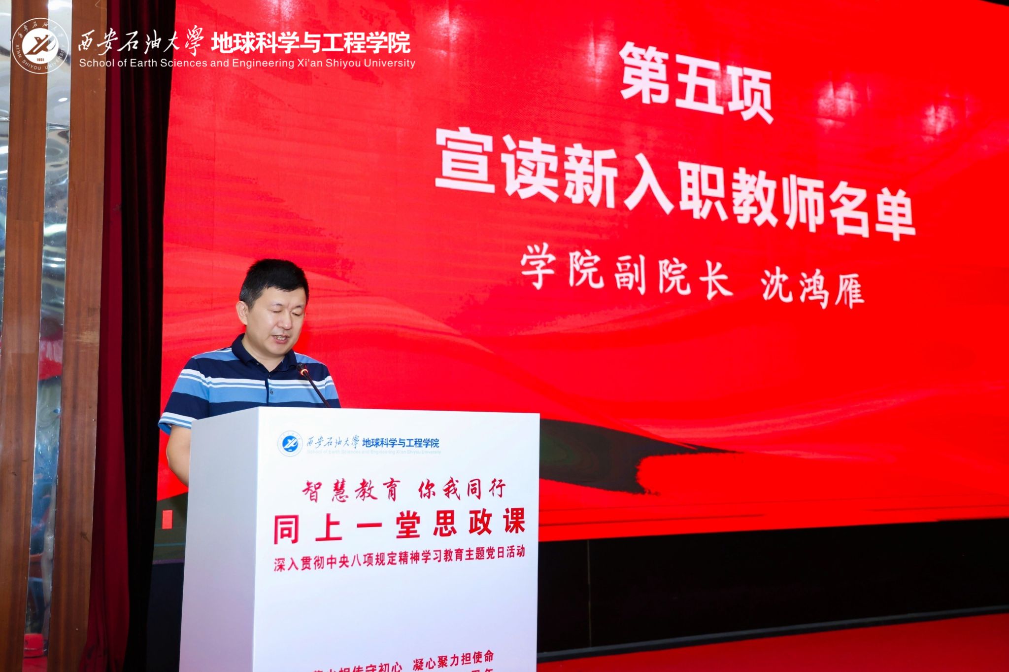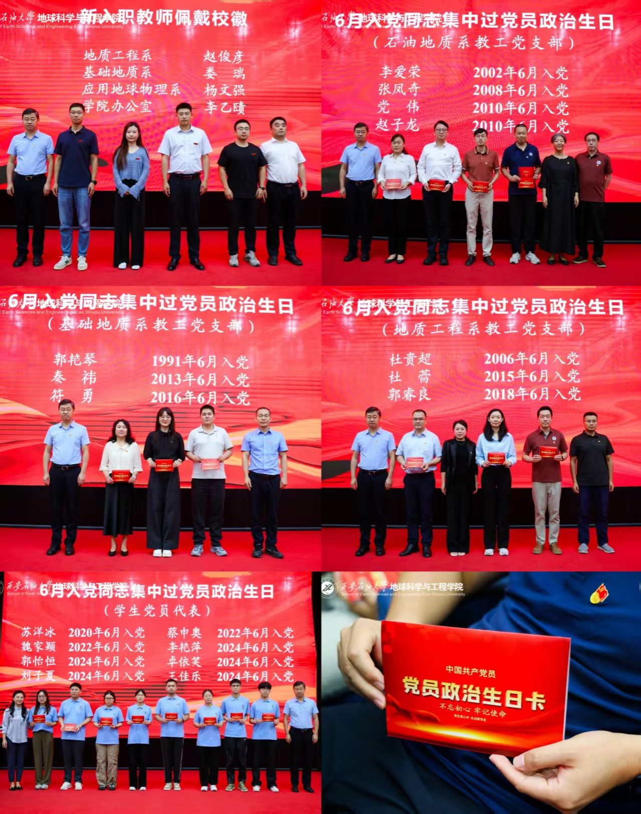 学院副院长沈鸿雁宣读学院新入职教师名单。学院院长宋立军等与会领导为新进教师佩戴校徽,象征教育薪火相传。在集中过政治生日环节,校院领导与各系党支部书记、主任为6月入党的师生党员代表颁发党员政治生日卡,进一步强化身份认同,激发使命担当。