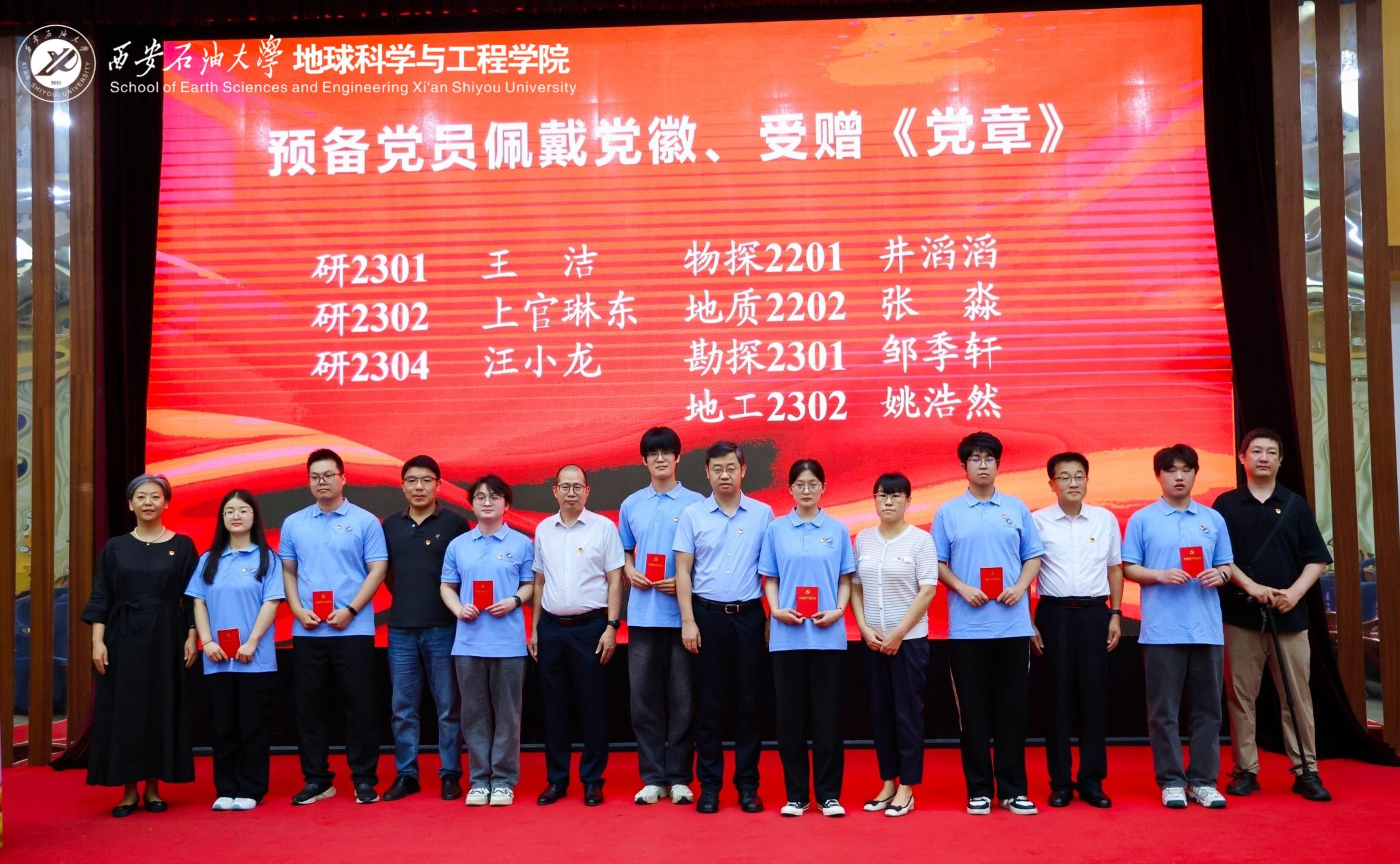 庄严仪式强信念,初心如磐担使命。学院党委副书记王莹宣读预备党员名单。在高黎同志的领誓下,新党员面向党旗庄严宣誓,老党员重温入党誓词。铿锵誓言响彻会场,表达了学院党员的赤诚信念。会场非党员师生共同肃立,观礼见证。王进富同志同学院各党支部在教学科研和管理服务一线工作多年、党龄较长的党员代表,为预备党员代表佩戴党员徽章并赠送党章,激励他们牢记党员身份,践行初心使命。