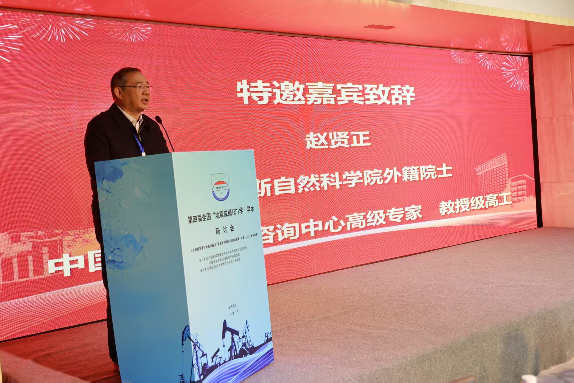 特邀嘉宾俄罗斯自然科学院外籍院士、中国石油集团咨询中心高级专家赵贤正教授代表会议的主办单位致辞。赵贤正表示,地震成藏(矿)学自2009年提出以来,已在理论与技术上取得显著进展,成为指导复杂地质条件下油气勘探的重要支撑,并呼吁广大科技工作者加强学科交叉与产学研合作,推动该学科向纵深发展,为我国能源勘探开发提供更强有力的理论和技术保障。