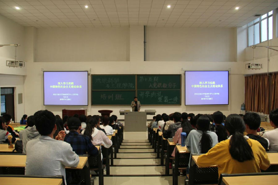 开学典礼后,马行天老师作为第一讲主讲老师,为同学们讲授了第一课,题目为“深入学习实践中国特色社会主义理论体系”。他从中国特色社会主义理论的体系构成要点、四大核心理论,以及最新发展等三个方面进行了授课。同时结合中国共产党的发展历史过程中中外发生的诸如“红军长征”,“改革开放”等重大历史事件,深入浅出地讲解了“中国特色社会主义理论体系”的深刻内涵,课堂内容丰富,气氛活跃。