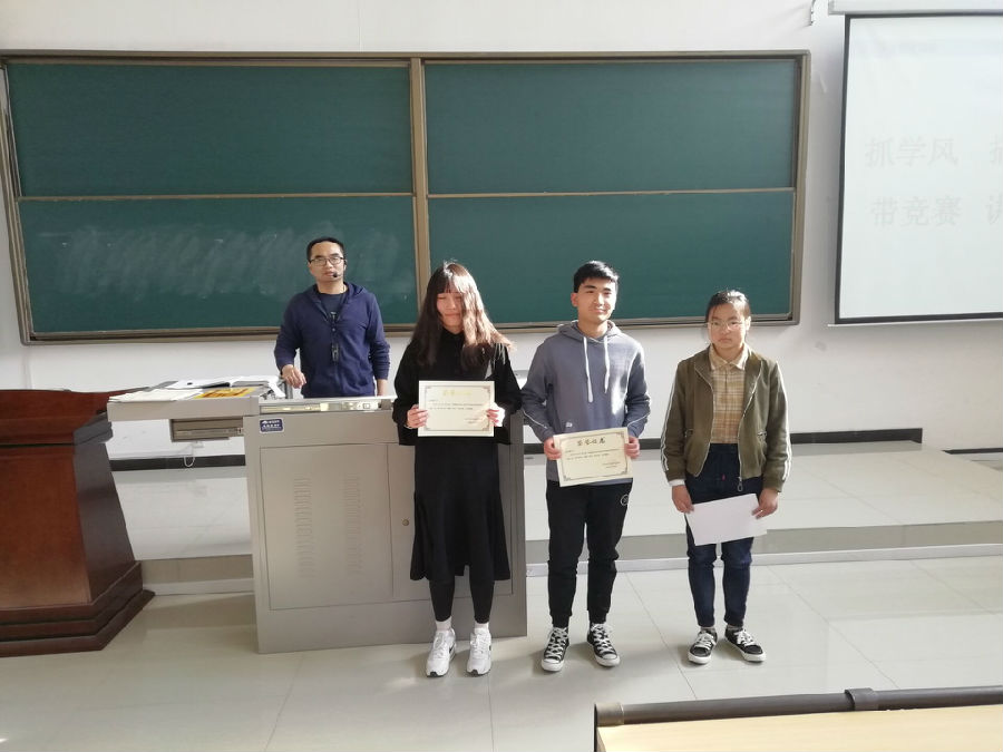 李化杰老师针对2018-2019学年第一学期期末成绩作了具体分析,指出目前2018级学风建设中存在的优缺点;同时,对上学期表现积极的先进个人进行了表彰,他宣读了《关于表彰2019年寒假社会实践活动先进个人的决定》《关于表彰2019年寒假“诵读经典,征文比赛”活动先进个人的决定》《关于授予唐子怡等三位同学专业“学霸”称号的决定》,给受表彰的先进个人颁发了证书。接着,李老师重点传达了省教育厅和学校有关安全稳定文件和会议的主要精神,他强调指出,全体同学要切实提升安全责任意识,增强防火、防盗、防骗、防传销意识,远离“校园贷”,原则上严禁组织集体出游活动,并对清明节小长假假期需要注意的事项进行了进一步讲解。最后,李化杰老师就近期2018级学生的其他工作做了安排和部署。