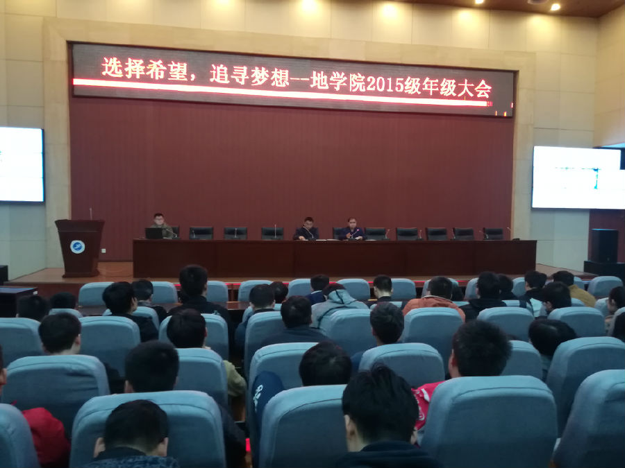 在鄠邑校区弘石报告厅召开2015级年级大会,会议由2015级学生辅导员邱岭老师主持,学院副院长宋立军教授、党委副书记孙会珠老师出席,2015级全体学生参加。