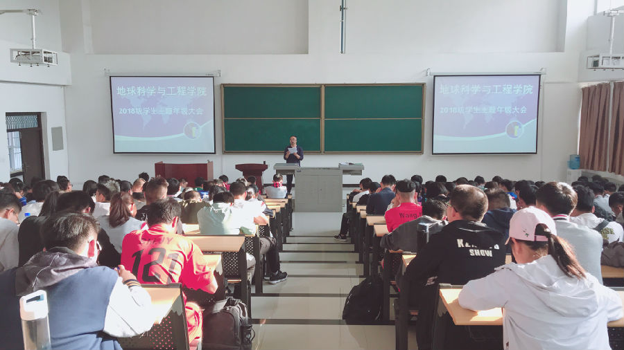 在鄠邑校区石工地科楼115教室召开2018级新生第一次主题年级大会。辅导员李化杰老师主持会议,学院2018级全体同学参加本次大会。