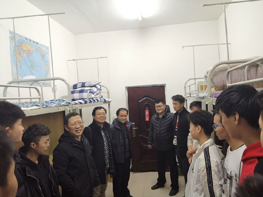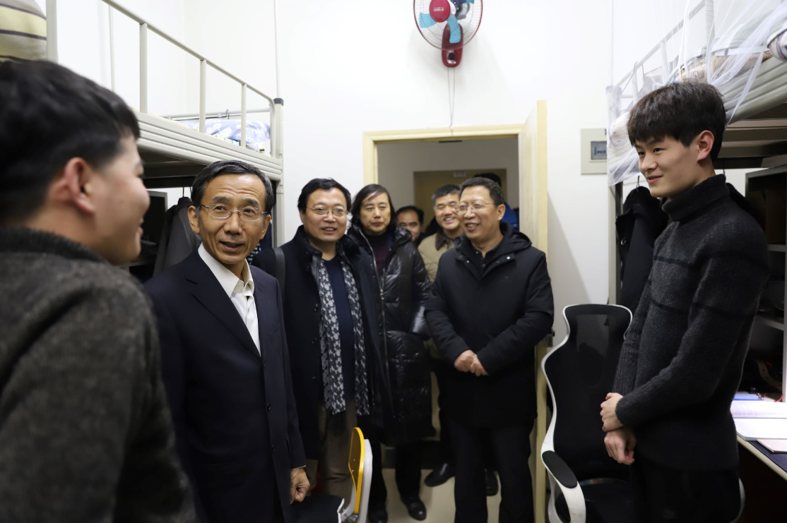 党政领导陪同校党委张木副书记到鄠邑校区学生宿舍楼走访看望学生,在辞旧迎新之际为学生送来新年的祝福,学校各职能部门、学院学生工作干部陪同走访。