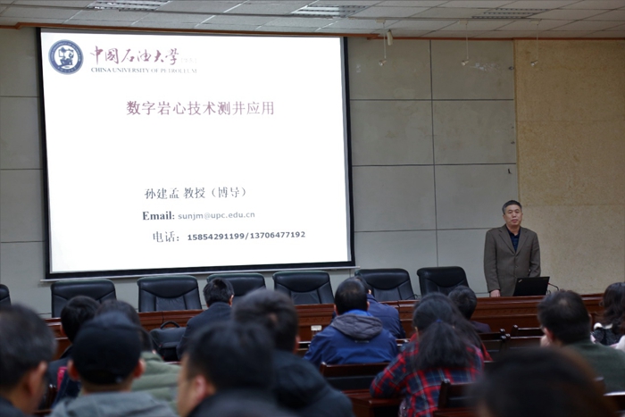 聘任仪式结束后,中国石油大学(华东)孙建孟教授以“数字岩心技术在测井中的应用”为题,在第三会议室为卡提诺论坛