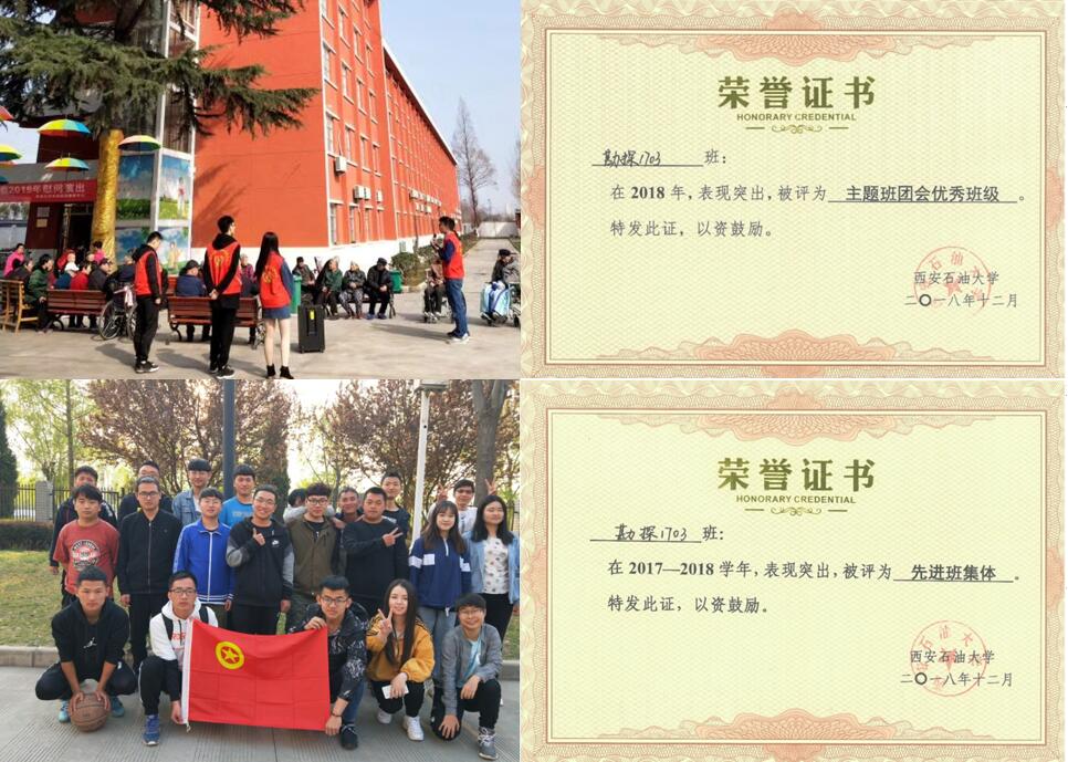 勘探1703团支部落实支部各项任务,以提升组织生活质量为抓手,将学风建设、志愿服务、社会实践、双创活动等融入到日常的组织生活中去,精心设计形式多样,严肃活泼的“三会两制一课”活动内容。支部成立以来获得集体荣誉3次,支部成员获得校级以上各类荣誉110人次。