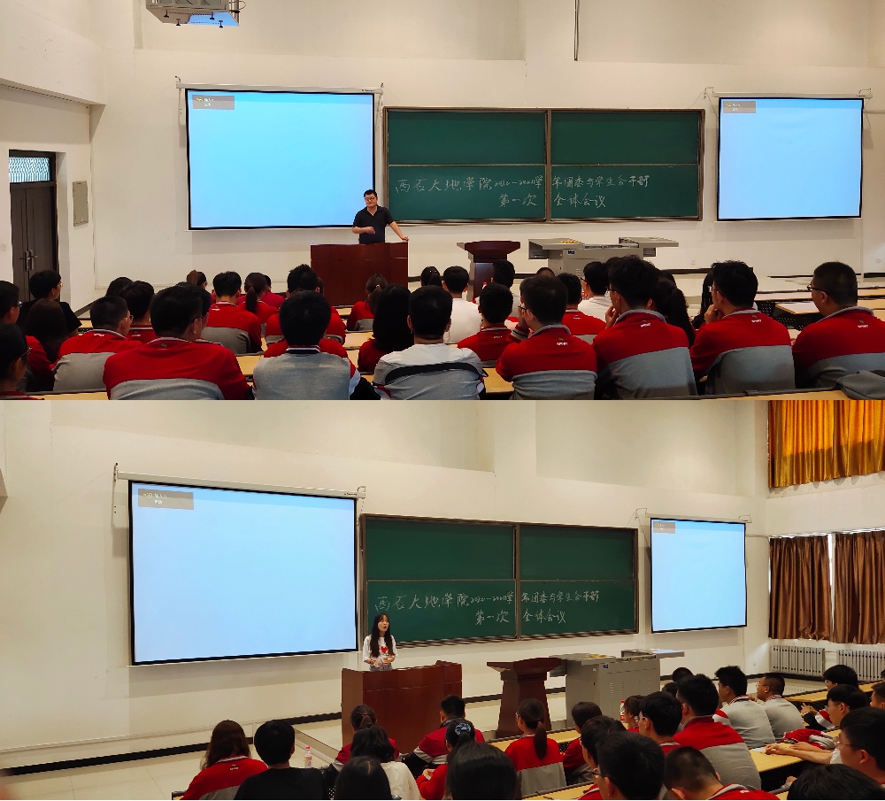 团委在鄠邑校区石工地科楼115教室召开新学期第一次团委学生会全体学生干部会议。学院团委书记邱岭、学生会指导老师李佩琦、学院团委和学生会主要学生干部参加会议。