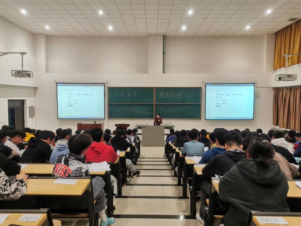 鄠邑校区石工地科楼115教室顺利举办四级通关系列讲座第一讲。由英语辅导名师葛琳主讲,学院各年级学生200余人参加讲座。