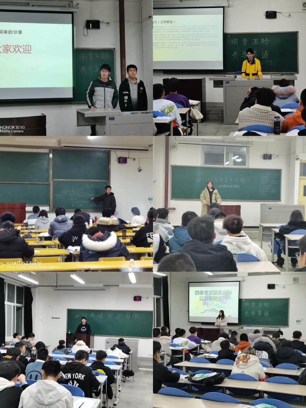 学院学工办联合教师、辅导员及学生成立英语能力提升专项小组,坚持学院统一目标,各年级因需制宜原则,采取开展专业老师讲座辅导、成立学生导师团互助、组织定期模拟考试、分层专项自学及组织英语类活动等方式,激发学生英语学习兴趣,提高学生英语听说读写能力,帮助学生高效通过英语四六级。通过英语学习以点带面,继续传承地科院优良学风。