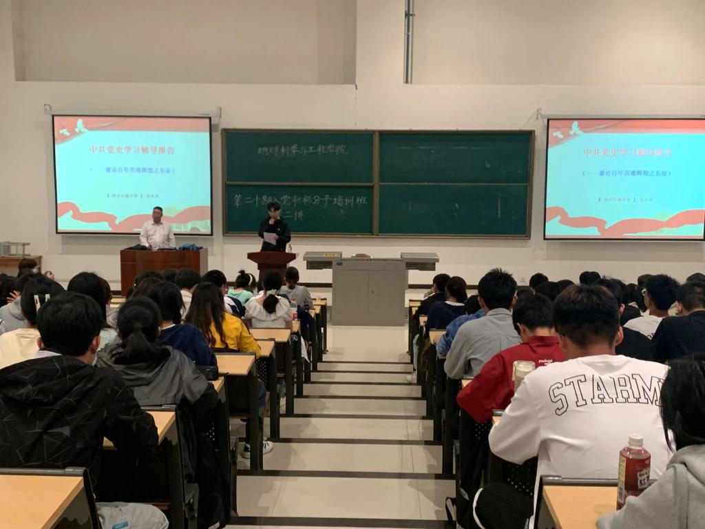 第二十期入党积极分子培训班第二讲在鄠邑校区开物楼115教室顺利召开。本次入党积极分子培训班讲课由人文学院党委书记余小勇老师主讲,研究生辅导员兼任组织员姜英哲老师主持,全体入党积极分子参加。