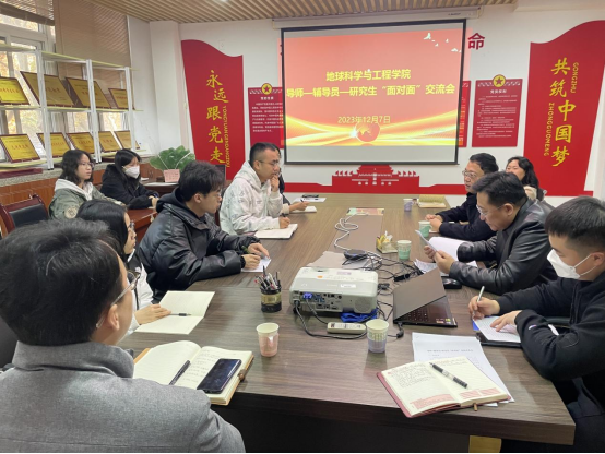 在雁塔校区一号实验楼207党员活动室开展了导师—辅导员—研究生“面对面”交流会。学院党委书记马行天、副院长刘之的、导师代表郭艳琴、党伟及9名研究生干部代表参加,研究生辅导员姜英哲主持交流会。