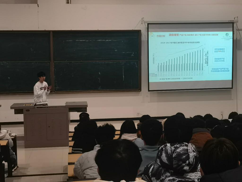 刘老师介绍了“挑战杯”的建立背景、赛事宗旨、竞赛说明以及申报要求,重点从选题方向、商业模式、财务分析、创业计划书撰写技巧等方面做了详细讲解。他鼓励同学们要善于发现身边的创新点,结合自身所学的专业知识去实现知识成果的转换。