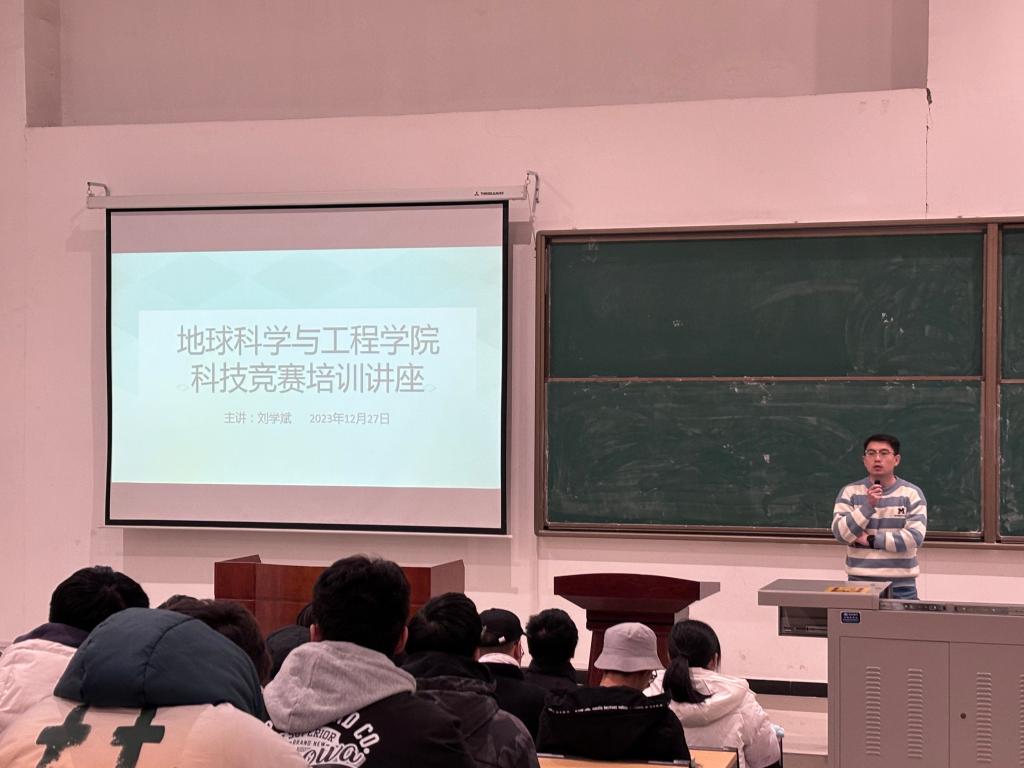于开物楼115举办科技竞赛培训讲座。本次讲座邀请到地工2301袁丰潍、勘探2102王子龙作分享,辅导员刘学斌主持讲座,学院百余名学生到场聆听学习。