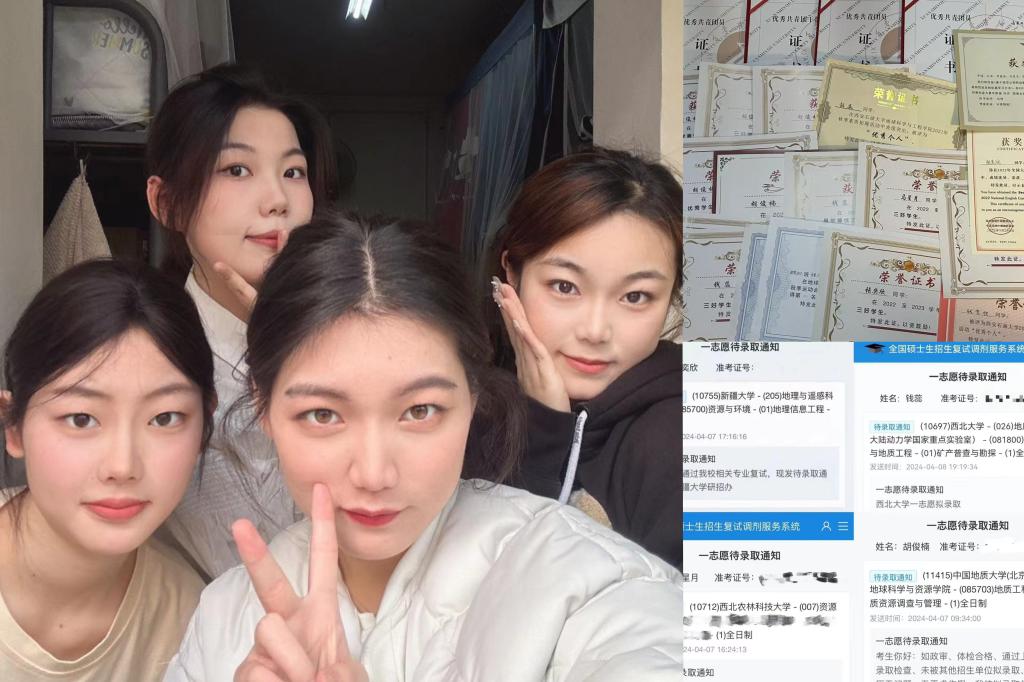 五个宿舍全员考研成功,其中同一宿舍2人被北京大学录取,14人被国家“双一流”建设高校录取,国内外知名高校录取率达到近90%。