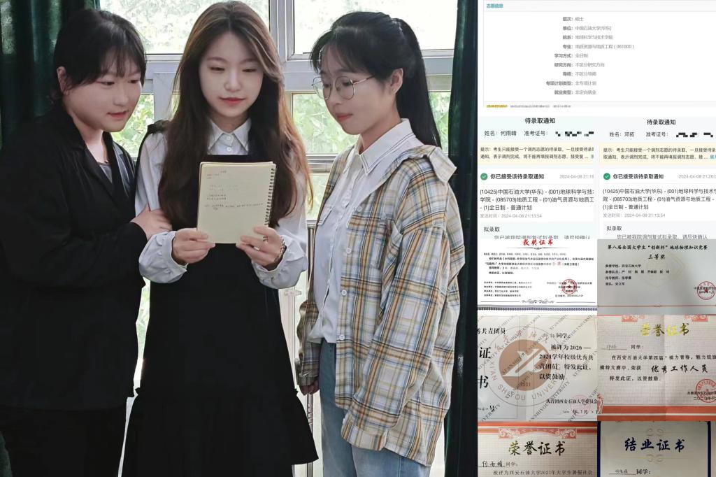 242宿舍3名女生在大二就确定了考研目标。喧闹的宿舍仿佛一瞬间就安静了下来,安静的背后更多的是上岸的坚定。全年级第一的同学在推免至中国石油大学(华东)后打响了宿舍考研的第一个礼花。大四阶段三名女生仍然共同学习,常常一起研究难题,一起讨论有效的学习方法。目前,另外两名女生也相继被中国石油大学(华东)录取,三姐妹用自己的信念与努力实现了宿舍的共同目标:去研究生学校继续当舍友。