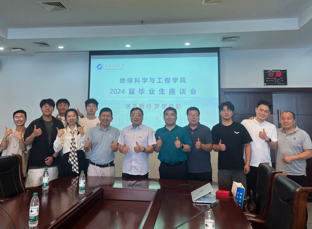 座谈会上,毕业生代表先后发言,畅谈在地科院的成长与收获。他们深情回忆在西石大求学、生活、成长的美好时光,汇报自身“成长答卷”,感谢母校悉心培养。他们纷纷表示,在逐梦未来的道路上,无论身在何方,都将始终牢记地质人的初心使命,始终秉承“好学力行自强不息”的校训,砥砺前行、不负韶华,书写无愧于母校、无愧时代的青春华章。
