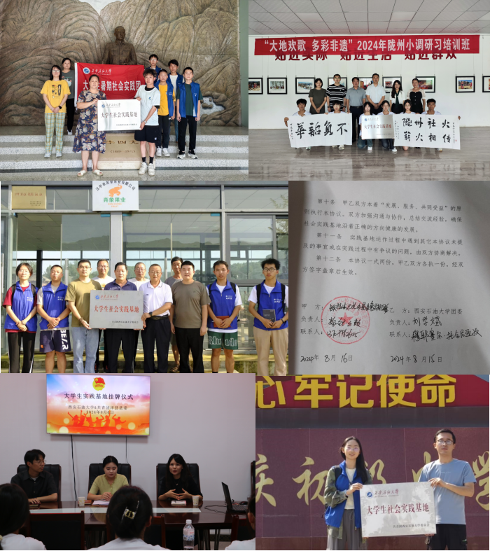 学院2024年暑假社会实践活动得到了社会各方的广泛关注,中华网、中国基层网、中国日报、陕西学联、搜狐网、多彩大学生网等知名媒体报道转发学生社会实践活动,累计浏览量超10000次。为巩固实践成果,加深学校与企业、地方的合作交流,在院党委的统一指导下,学院同城固县桔园镇镇委会、陇县文化馆、黄冈李四光纪念馆等8家单位签订了社会实践合作基地建设协议并举行挂牌仪式,建立了长期的实践合作关系。