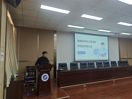 在雁塔校区西阶会议中心第五会议室(主会场)和鄠邑校区博思楼B125(分会场)同步召开研究生大会,学院领导班子成员、科研办主任、研究生辅导员以及全体研究生参加会议,会议由副院长党伟主持。
