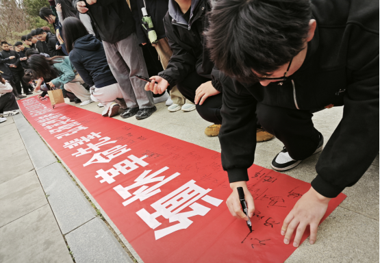 面对鲜红党旗,全体党员高举右拳,重温入党誓词,字字千钧的誓言在陵园内久久回荡。随后,同志们依次在“缅怀革命先辈,弘扬英烈精神,传承红色基因,勇担青年使命”横幅上郑重签名,并分组擦拭烈士纪念碑、清扫陵园环境,以躬身实践表达对先烈的尊崇与缅怀。