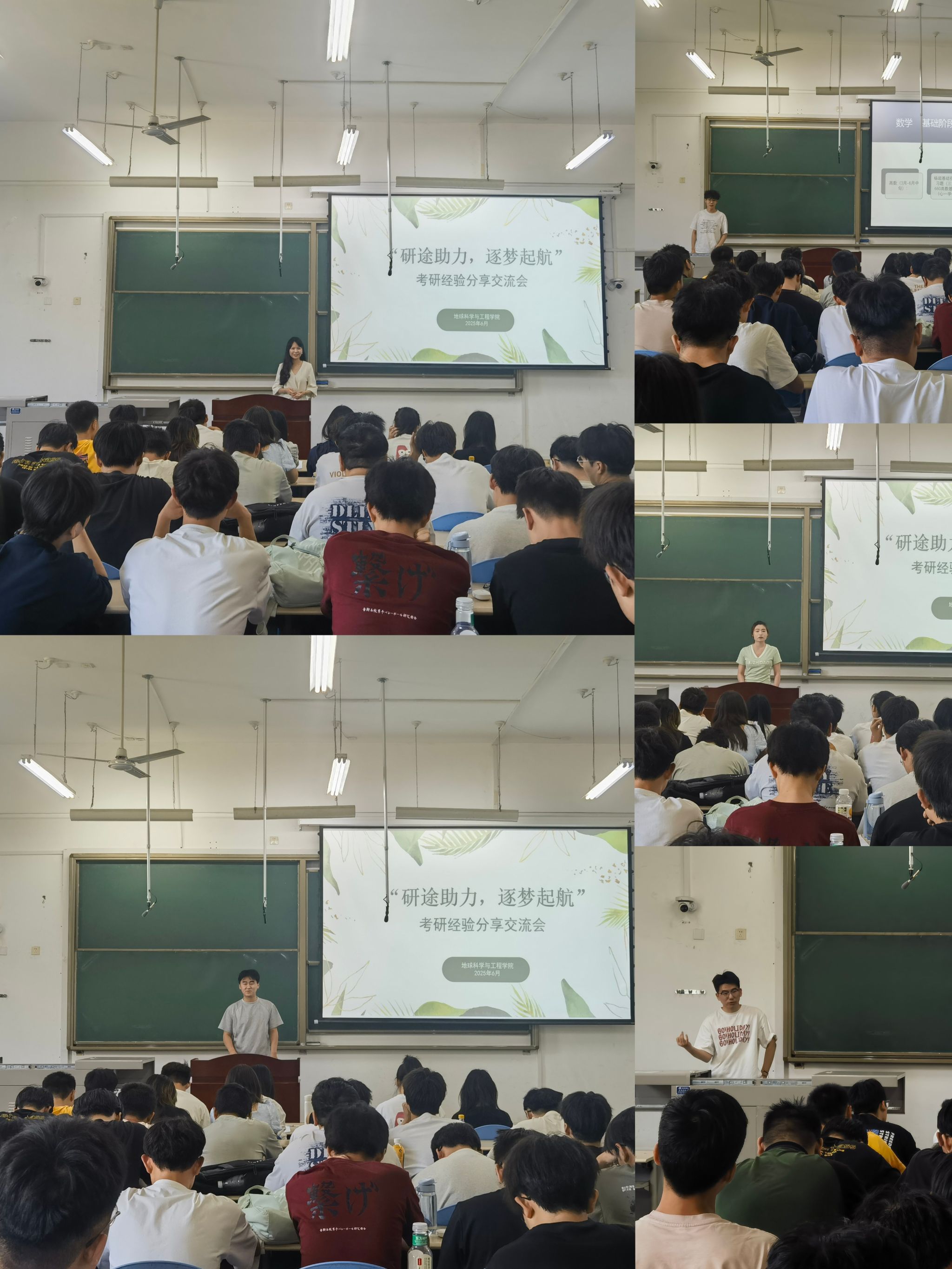 在鄠邑校区A502、B305、B101等教室举办“研途助力,逐梦起航”考研经验分享交流会。本次活动共邀请22名2025届考研成绩优异的毕业生代表进行经验交流,活动由各年级辅导员主持,吸引了全院600余名学生参与。