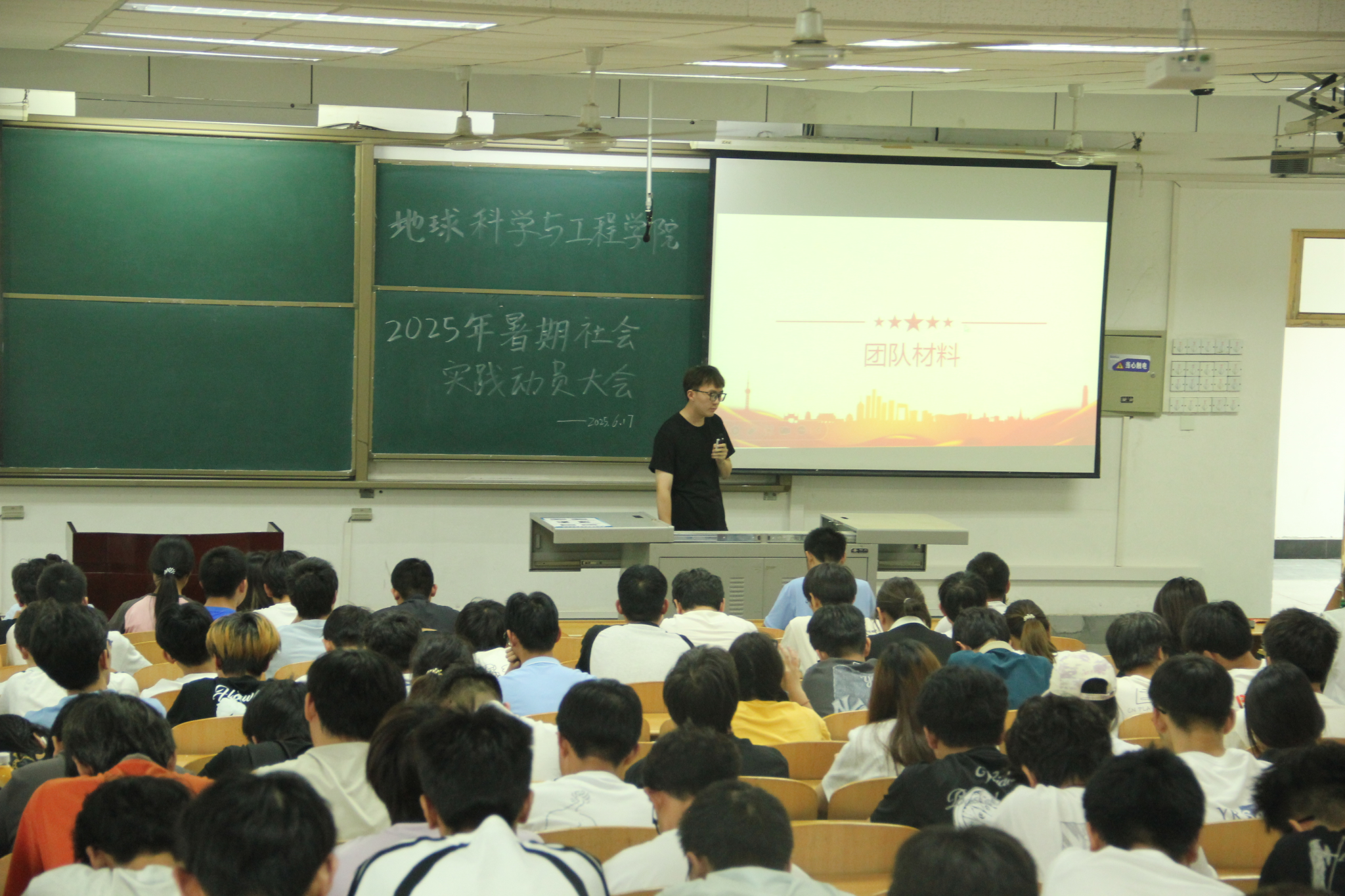在博览楼A134召开2025年暑期社会实践动员大会。会议由2024级辅导员王文强主持,学院2024级全体本科生参会。
