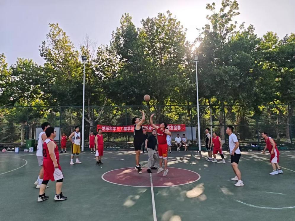 当日下午,平日严谨治学的教授们与即将扬帆起航的毕业生们换上运动装束,组成教师联队与学生联队展开激烈角逐。哨声响起,球场瞬间成为挥洒汗水、传递情谊的舞台。教师队凭借丰富的经验与默契的配合,展现出如地质构造般稳固的战术素养;学生队则依靠青春的活力与无畏的冲劲,发起如地壳运动般迅猛的攻势。双方你来我往,比分胶着上升,每一次精彩的抢断、精准的投篮都引来场边喝彩,充分诠释了“友谊第一,比赛第二”的体育精神。四节常规比赛战罢,双方意犹未尽,又自发进行了加时友谊赛,将现场气氛推向高潮。