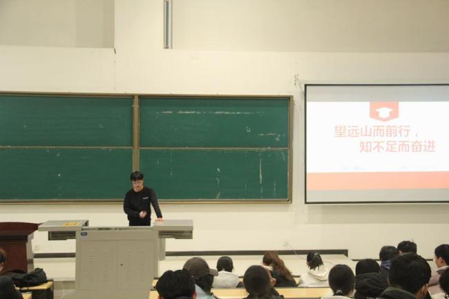 生涯导航:师者匠心照亮未来征程。在引导学生认知大学生活、规划学业路径的同时,学院高度重视其长远发展的战略性引导。第二阶段着力于“职业生涯启蒙”,由就业指导工作经验丰富的大一辅导员贺大川老师主讲。贺老师基于对往届毕业生在国内外深造、重点行业就业、基层项目服务、参军入伍等多维度发展状况的持续跟踪与深度剖析,为大一学生呈现了一场基于详实数据、典型案例的生涯发展讲座。深入解读了地学相关领域在国家能源安全、生态文明建设及“双碳”战略目标背景下所蕴含的时代机遇与历史责任,并引导学生运用生涯规划工具进行初步自我认知,探寻个人志趣、学科特色与社会发展需求的契合点。讲座深刻阐释了“将个人理想追求融入党和国家事业发展全局”的价值导向,旨在助力学生早期树立远大志向,构建连接当下学习与未来贡献的有效认知路径。