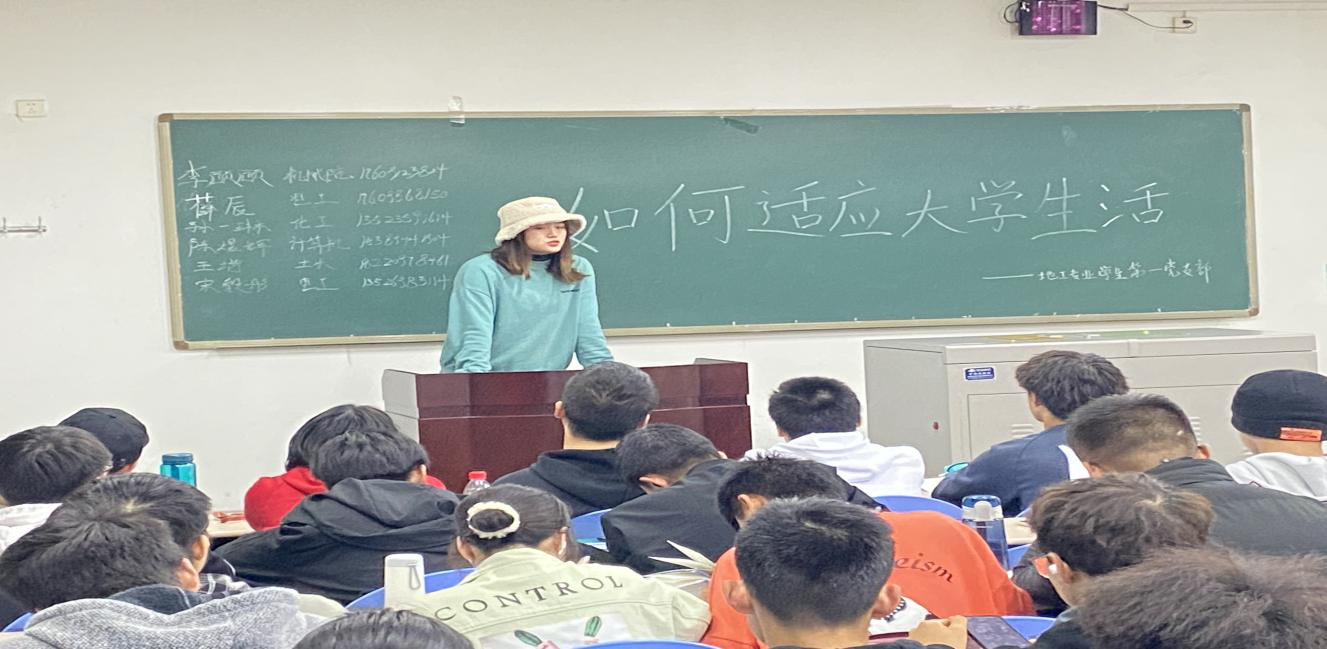 地工专业学生第一党支部全体党员准时到达A233教室,利用地工专业大一新生晚自习时间,开展了“助力学弟学妹们早日适应大学生活”主题党日活动。