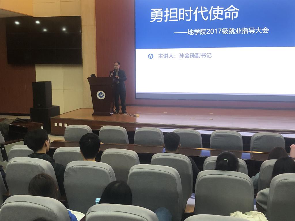 在鄠邑校区弘石报告厅召开就业指导大会。学院党委副书记孙会珠主讲,学工办主任邱岭主持,全体2017级本科生参加会议。